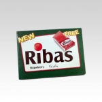 ريباس الجديد شرائح بالإضافة إلى السكاكر بنفس العلبة وهي خالية من السكر ، ملطفة ومنعشة للفم