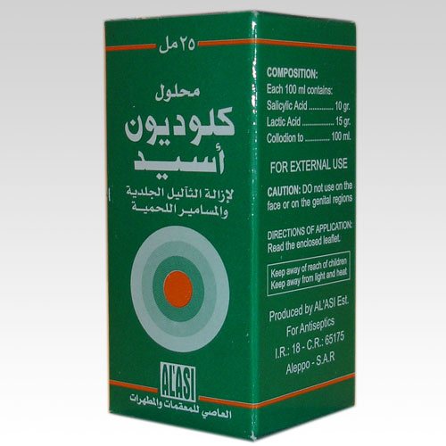 يستعمل محلول الكلوديون لإزالة الثآليل الجلدية والمسامير اللحمية، ويجب أن يستعمل فوق المنطقة المصابة تماماً.
